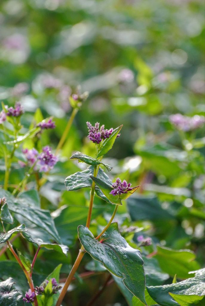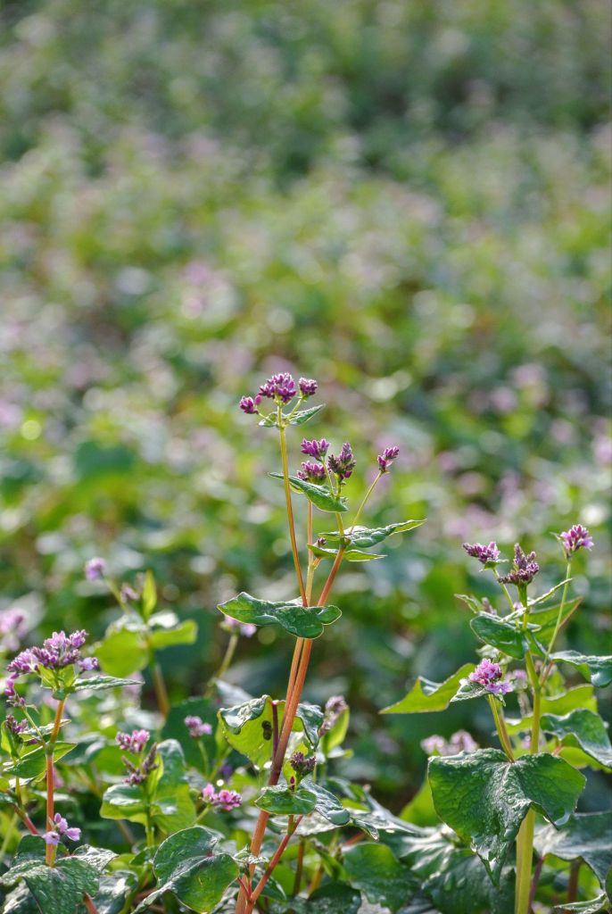 全体的には緑色の畑ですが、赤そばの花は咲き始めています。